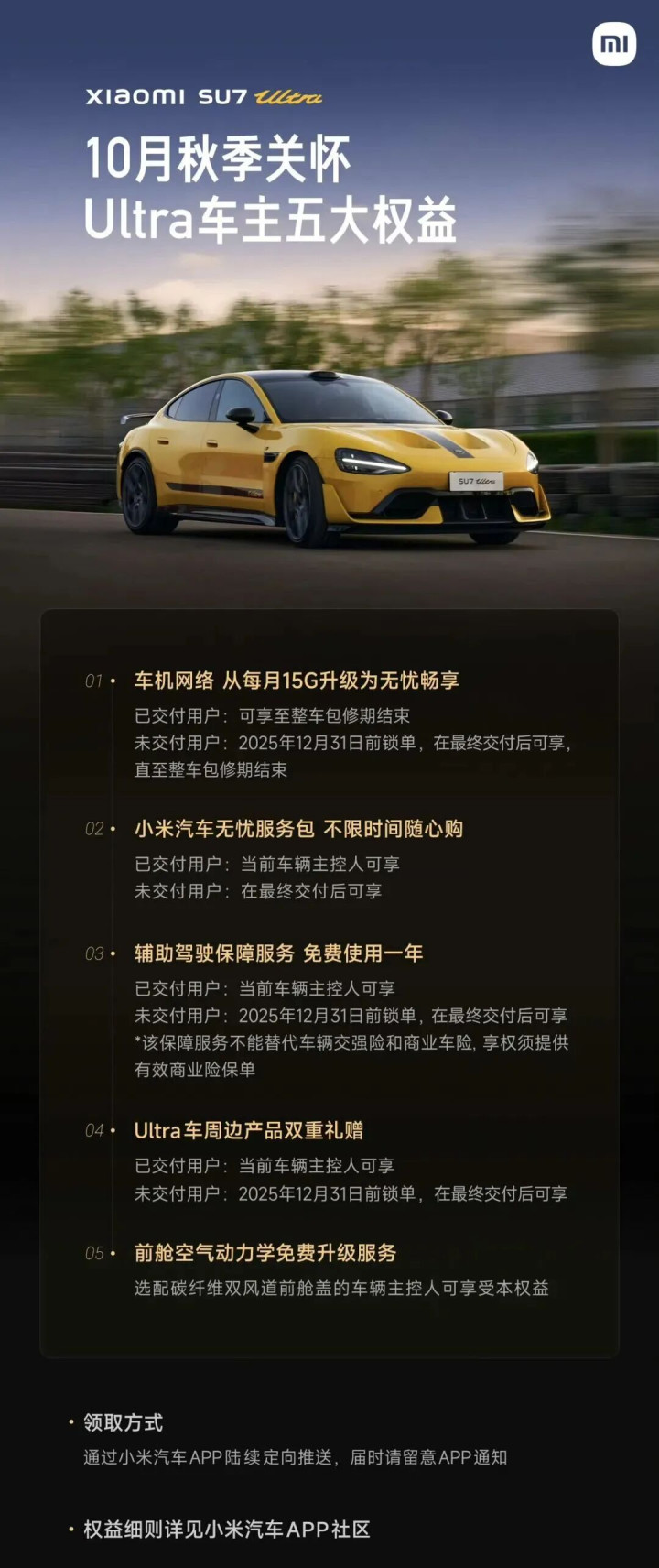 多花了几十亿,小米汽车终于给自己找回来一些口碑。此前的10月24日午间,小米汽车宣布,2025年11月30日前锁单的用户,若因小米自身原因延迟至2026年交付,所产生的购置税差额将由小米全额承担,补贴至高1.5万元,覆盖SU7、YU7、SU7 Ultra全系车型。这一条微博的发布,将小米汽车送上热搜。